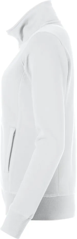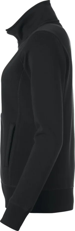 Sweatshirt med hel dragkejda i dam- och herrmodell med praktisk lösning för mobiltelefonen. Sidfickor med dragkedja, 2x2 rib i muddar och nedtill samt ton-i-ton flatlocksömmar.
