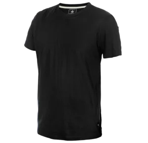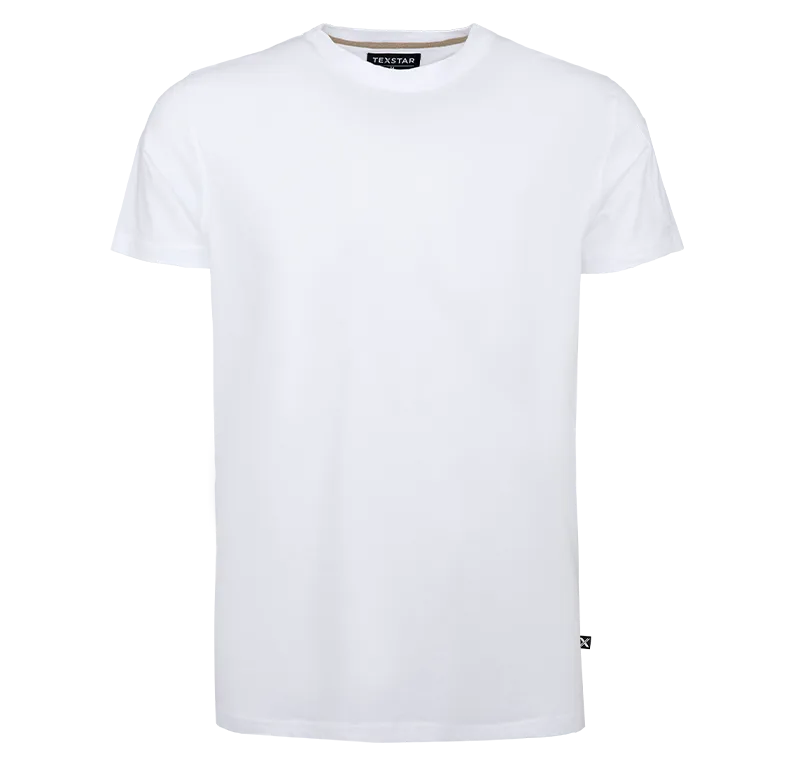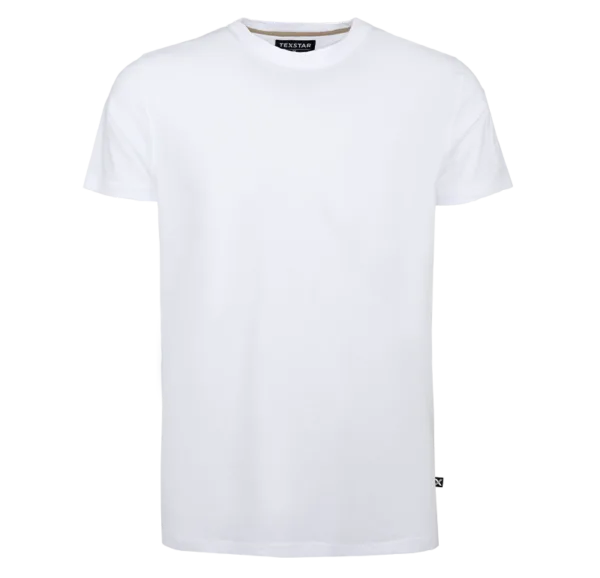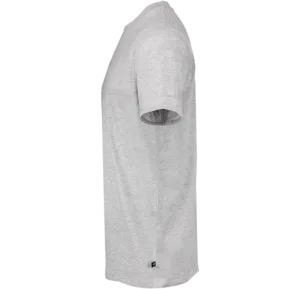 Hemligheten bakom våra populära t-shirts är den moderna skärningen och materialet – en mjuk och behaglig 100 % ringspunnen kammad bomull. Den grå modellen, färgkod 9500, är i 50 % bomull och 50 % polyester. Det känns direkt när den glider på och det märks genom att den håller formen tvätt efter tvätt. Ficka på vänster ärm. En detalj som ger extra god passform är ett nackband som sitter på insidan från axel till axel. Inget sladder här inte. Att den även har miljömärkningen Oeko-Tex Standard 100 är vi stolta över.