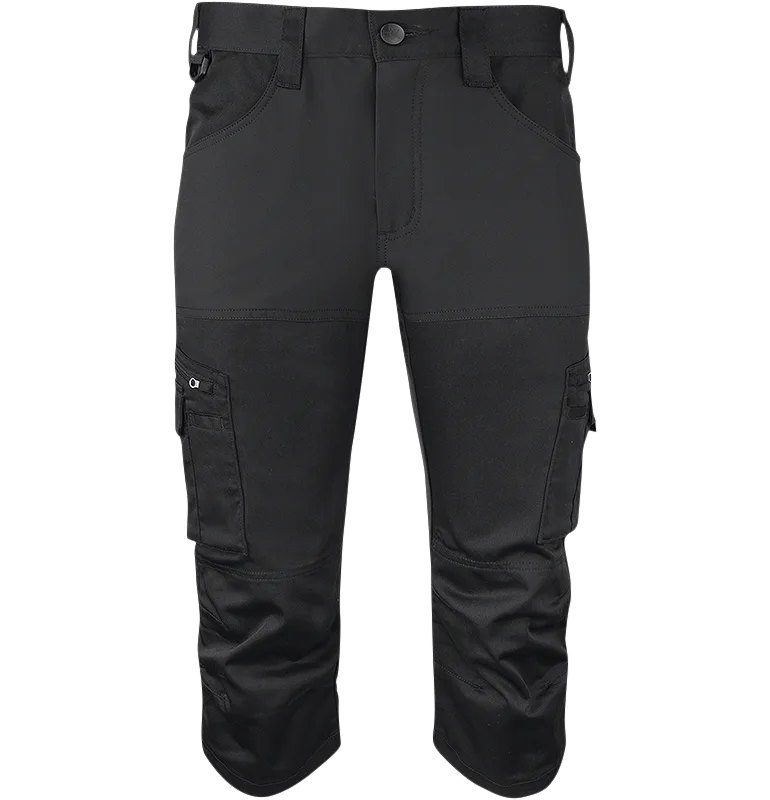 Piratbyxor i bekväm 4-vägsstretch som har en tunnare stretch fram, bak och insida lår för bästa komfort. Dolda knäfickor för knäskydd AK01, två sidfickor med lock, pennfickor samt två bakfickor.