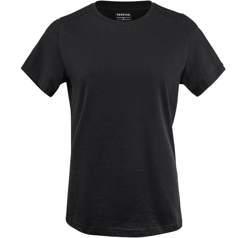 Upplev komfort och stil med vår nya moderna t-shirt. Tillverkad i en slitstark blandning av polyester och bomull, integrerar denna t-shirt Dry-Techteknologi som aktivt transporterar bort fukt och torkar snabbt. Med en rakare siluett erbjuder den en modern passform som kompletterar den professionella garderoben.