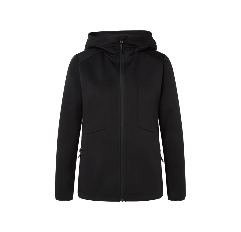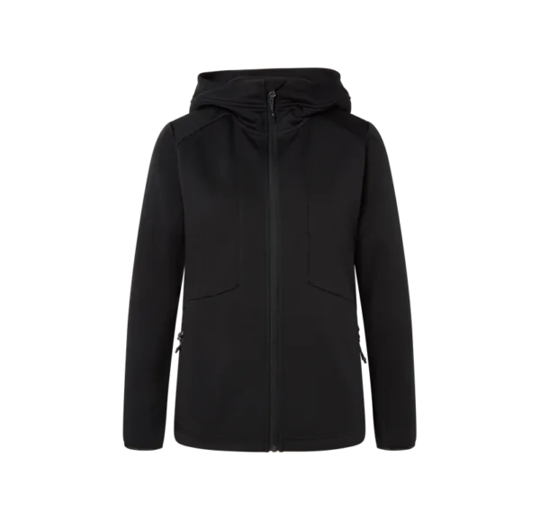 Hoodie i bondad polyesterfleece som håller formen och färgen länge. Blixtlåsförsedda fickor med reflexdetaljer och förböjda ärmar för bra komfort.