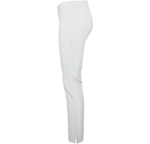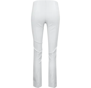 En stilig arbetsbyxa dam i ett mycket elastiskt stretchtyg. Den höga midjan med insydd resår sitter skönt över magen. Modellen är tajt, utan fickor och har raka ben som avslutas med ett sprund nedtill. Innerbenslängd ca 77,5 cm i storlek M.