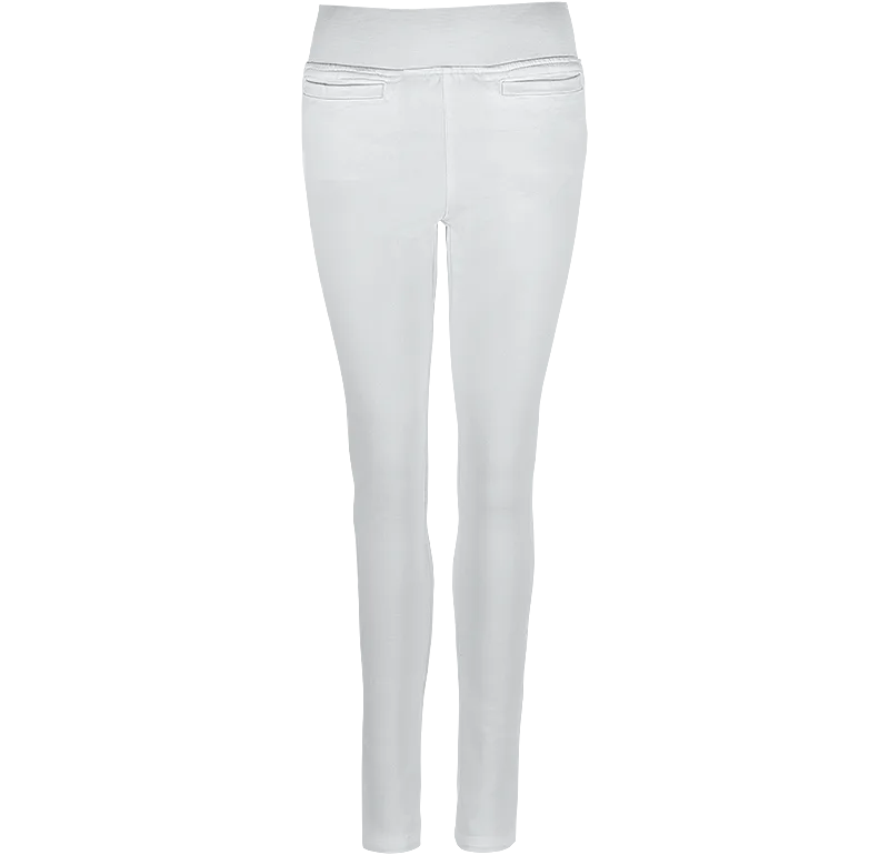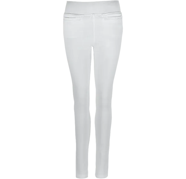 Arbetsbyxa dam i ett stretchigt jeanstyg av hög kvalitet. Den höga midjan med sin breda resår ger optimal komfort under hela arbetsdagen. Tajt modell med slimmade ben. Två mindre, raka fickor framtill samt två klassiska fickor bak. Innerbenslängd ca 81,5 cm i storlek M.