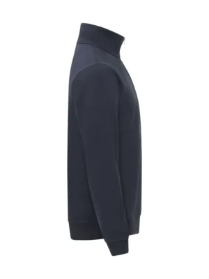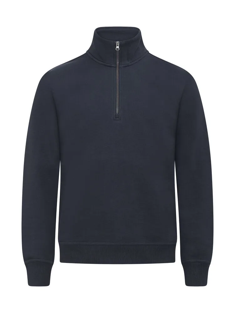 Unisex tröja med halvzip gjord av en blandning av bomull och återvunnen polyester. Den har en högre hals för komfort och en SBS-dragkedja med metall-look. Den elastiska 2x2-ribben har dubbelsömmar vid ärmslut och nederkant. Inkluderar nackband i twill och en lätt avtagbar nacketikett för ommärkning. Det mjuka, stabiliserade tyget är designat för intensiv tvätt och har anti-pilling-egenskaper.