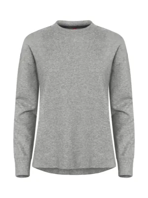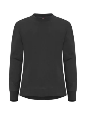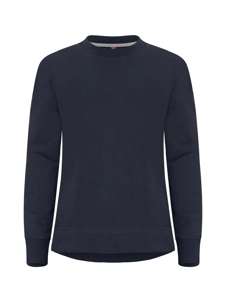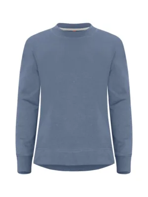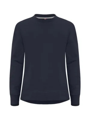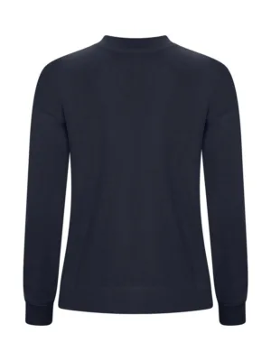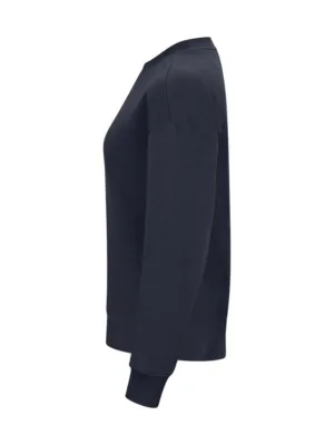 En något oversized tröja med rund hals för kvinnor, gjord av French terry-kvalitet och en bomull-återvunnen polyesterblandning. Har något sänkta axlar och en slits vid botten av sidosömmarna. Den bredare elastiska 2x2-ribben har enkel söm vid hals och ärmslut, med en hög mudd vid botten. Inkluderar kontrastfärgat nackband i twill och en lätt avtagbar nacketikett för ommärkning. Det mjuka, stabiliserade tyget är designat för intensiv tvätt och har anti-pilling-egenskaper.