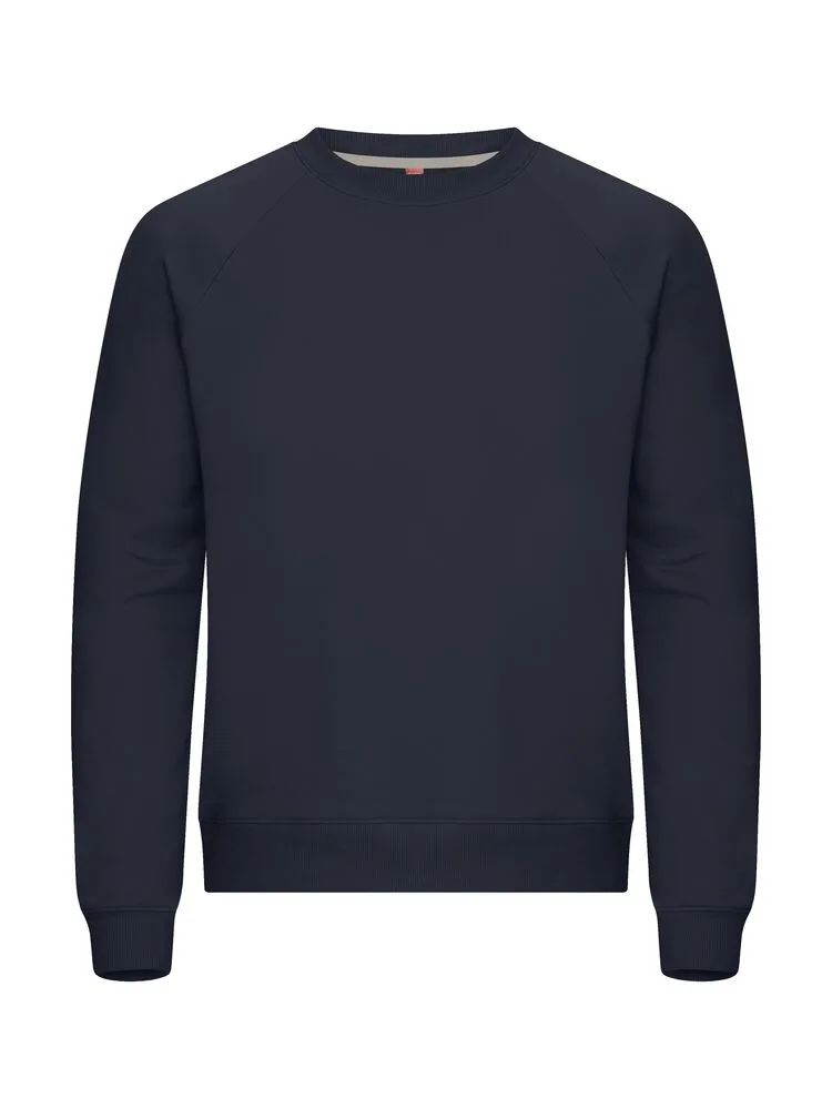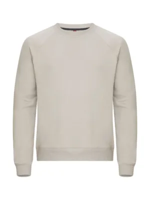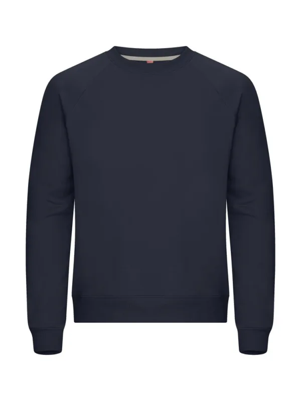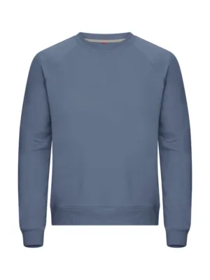 Unisex tröja med rund hals i French terry-kvalitet, gjord av en blandning av bomull och återvunnen polyester. Har raglanärmar och en elastisk 2x2-ribb med enkel söm vid hals, ärmslut och nederkant. Inkluderar kontrastfärgat nackband i twill och en lätt avtagbar nacketikett för ommärkning. Det mjuka, stabiliserade tyget är designat för intensiv tvätt och har anti-pilling-egenskaper.