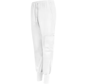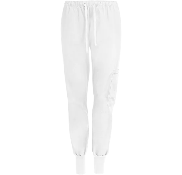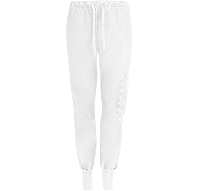 Generös operationsbyxa med lite större vidd upptill och i lår. Resår i midjan med dragsko och en bredare mudd i benslut. Tillverkad i ett slitstarkt, färgbeständigt material som tål 85° tvätt. Snedställda fickor samt en större ficka på vänster ben, kombinerad med två mindre fickor, för diverse verktyg.