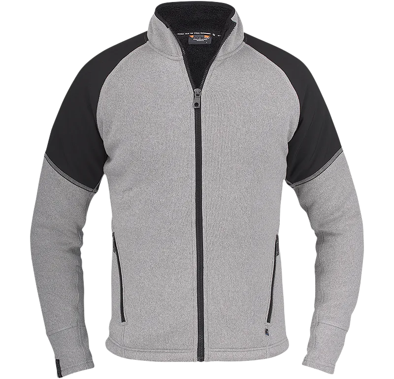 En efterlängtad jacka med superskön insida i pile. Den mjuka insidan ger en skön känsla vid kyliga morgnar. Utsidan är snyggt stickad och har stretchpartier över axlar, överarmar och mellan skuldrorna – en naturlig plats för tryck och brodyr. Raglanärm för bättre rörlighet i axel och arm. Två sidofickor med borstad insida för varma händer. Dragsko i nederkant. Ordentlig dragkedja och puller för bättre grepp.