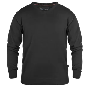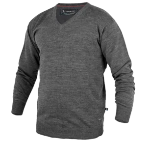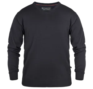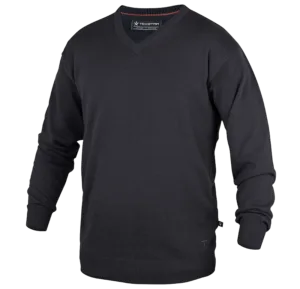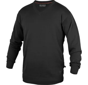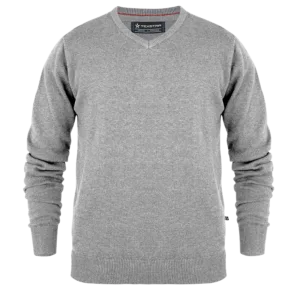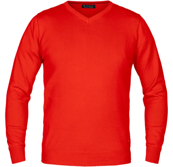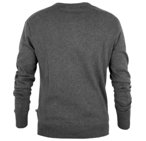 En riktigt skön stickad tröja för både honom och henne i 100% bomull. Används med fördel över en av våra skjortor för en dressad och snygg look på jobbet. Pullovern har god, modern passform som tål att tvättas utan att tappa formen. Halsen är v-formad och muddarna är härligt rejäla.