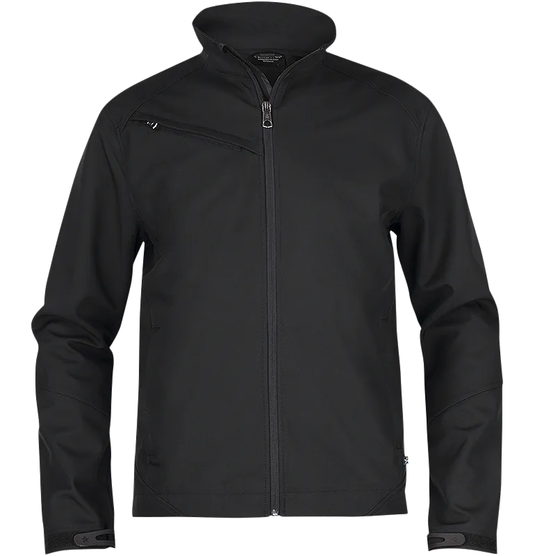 En Softshelljacka som ger ett välklätt intryck och passar årets alla årstider. 2-lagersjacka är lätt och skön med en lite högre krage, blixtlås i plast som går ända upp, innerficka och två sidfickor med blixtlås och en D-ring i bröst och vänster ficka för passerkort eller nycklar. En softshelljacka med god färgbeständighet och bra passform.
