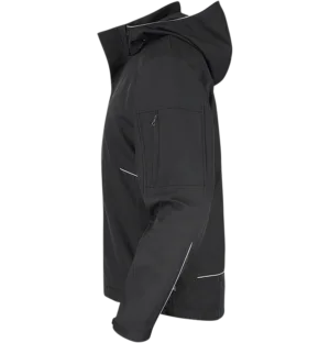 Vår nya härliga 3-lagers softshelljacka som är vind- och vattenavvisande för lite tuffare dagar. Denna moderna och snygga softshelljacka som passar de flesta tillfällen. Softshelljackan har löstagbar justerbar huva med hög krage, där blixtlåset går ända upp. Dragkedja under ärmarna för extra ventilation. Bröstficka på höger sida med D-ring och ärmficka på vänster ärm med blixtlås. Två sidofickor med blixtlås, reflexpiping på huva, ärm ovan fickor och på ryggen med dragsko i nederkant.