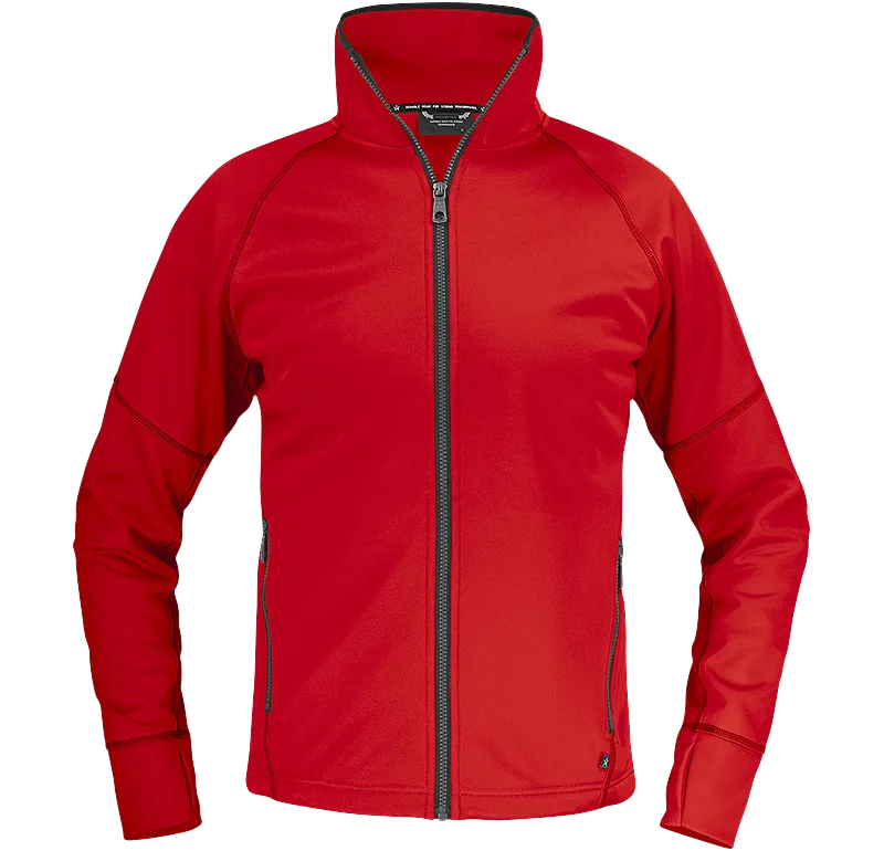 I denna jacka klär du verkligen teamet! Enfärgade med mörkgrå flatlock-sömmar som snygg kontrast. Snedställda sidosömmar som gör att de två sidofickorna verkligen syns. Raglanärm för mer rörlighet i axel och arm. Ordentlig dragkedja och puller för bättre grepp och justerbar i nederkant. Borstad insida.
