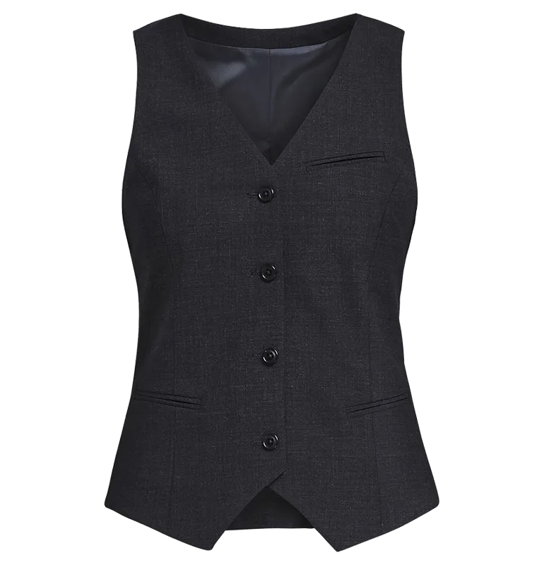 Vår nya, klassiskt eleganta kostym för henne, med 4-vägsstretch är gjord för att trivas i. Slitstark, i ull och recirkulerad polyester. Västen Ellie är helfodrad och har tygrygg som ger god rörelsefrihet, reglerbar midjevidd för god passform. bröstficka och två framfickor.