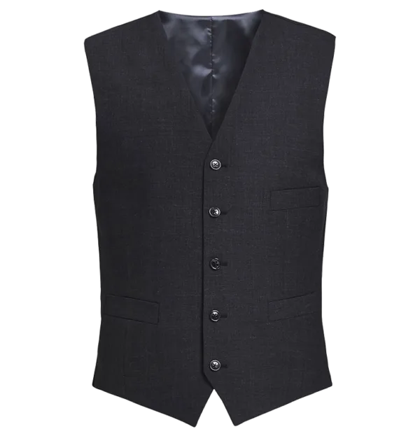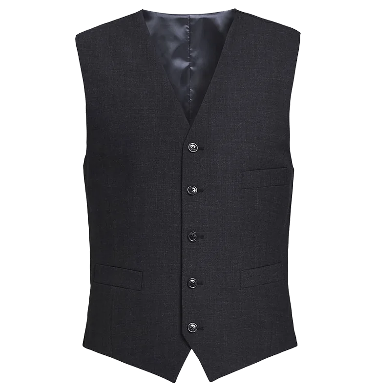 Vår nya, klassiskt eleganta kostym för honom, med 4-vägsstretch är gjord för att trivas i. Slitstark, i ull och recirkulerad polyester. Västen Leon är helfodrad och har tygrygg som ger god rörelsefrihet, reglerbar midjevidd för god passform. bröstficka och två framfickor.